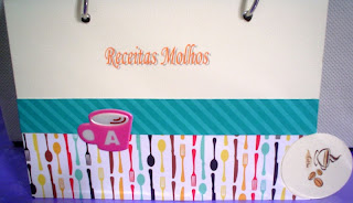 Olá meninas, acabei as lancheiras de Eduardo. Aff!. Agora fiz um caderno de receitas com fichas pautadas e divisões. As divisões foram feitas com papel filipaper casca de ovo creme e enfeitada com papel de scrap e adesivos. Vejam e me digam o que acham.